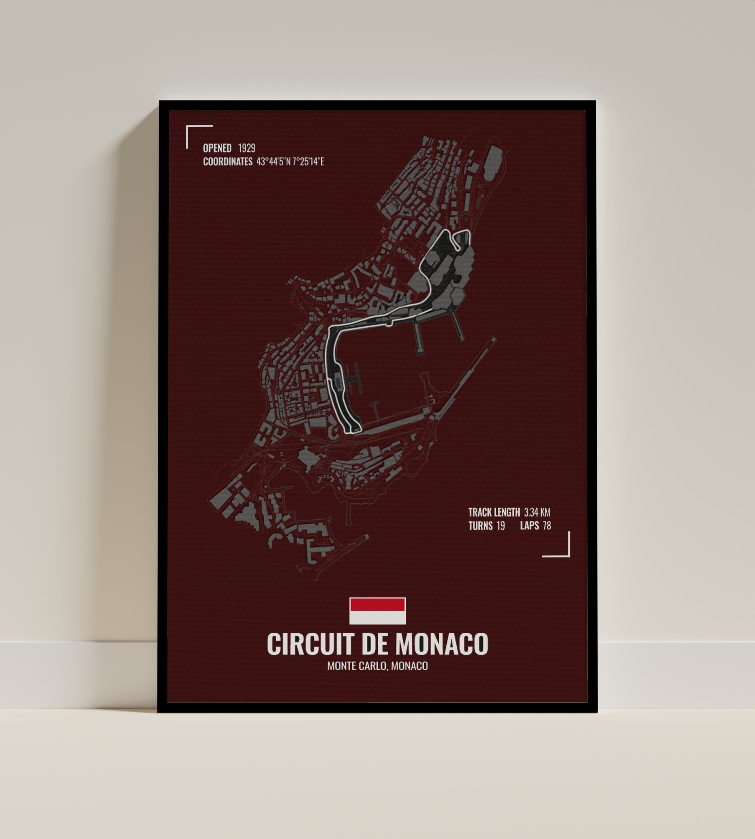 Navigate the glamour and grit of Monte Carlo with this stylized Circuit de Monaco print, showcasing the tight turns and legendary layout of Formula 1’s most iconic street race. A sleek fusion of motorsport history and urban elegance, built for fans who appreciate precision and prestige.