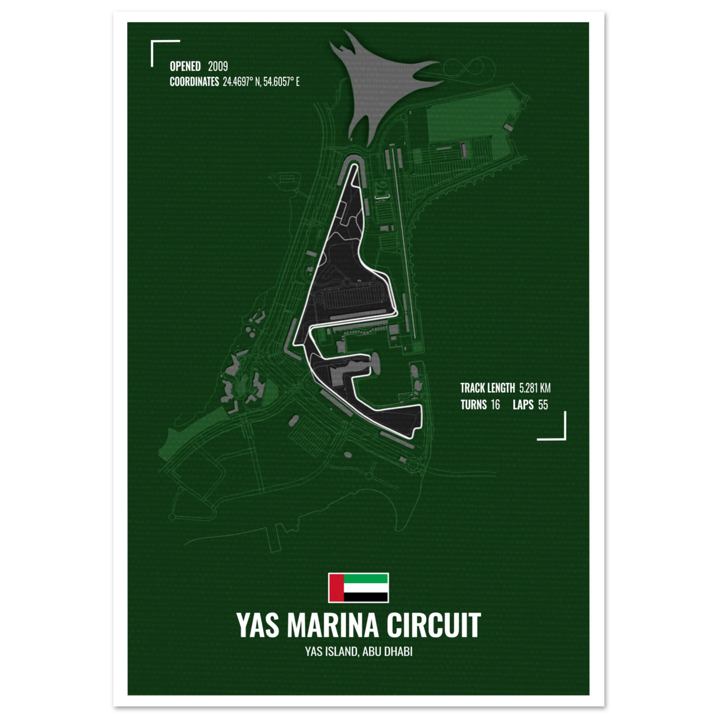 Clean, data-driven, and visually striking—this Yas Marina Circuit artwork captures the precision and drama of Abu Dhabi’s premier F1 track. A sleek addition for fans who appreciate design as much as racing.